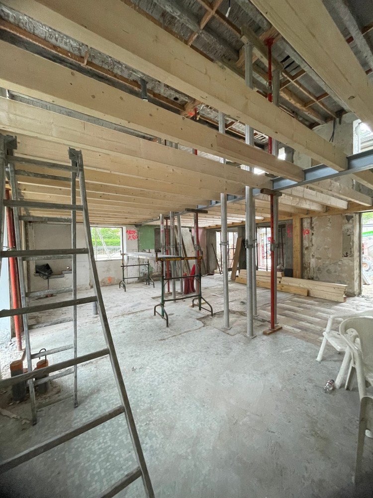 ESPACES PROFESSIONNELS EPISODE 19 – PLANCHER BOIS R+1 Le chantier est libéré pour laisser place à l’intervention de l’entreprise GM Charpentes qui réalise la pose de la nouvelle travée bois. 🏫Création d’un cabinet médical Prendre un rendez-vous