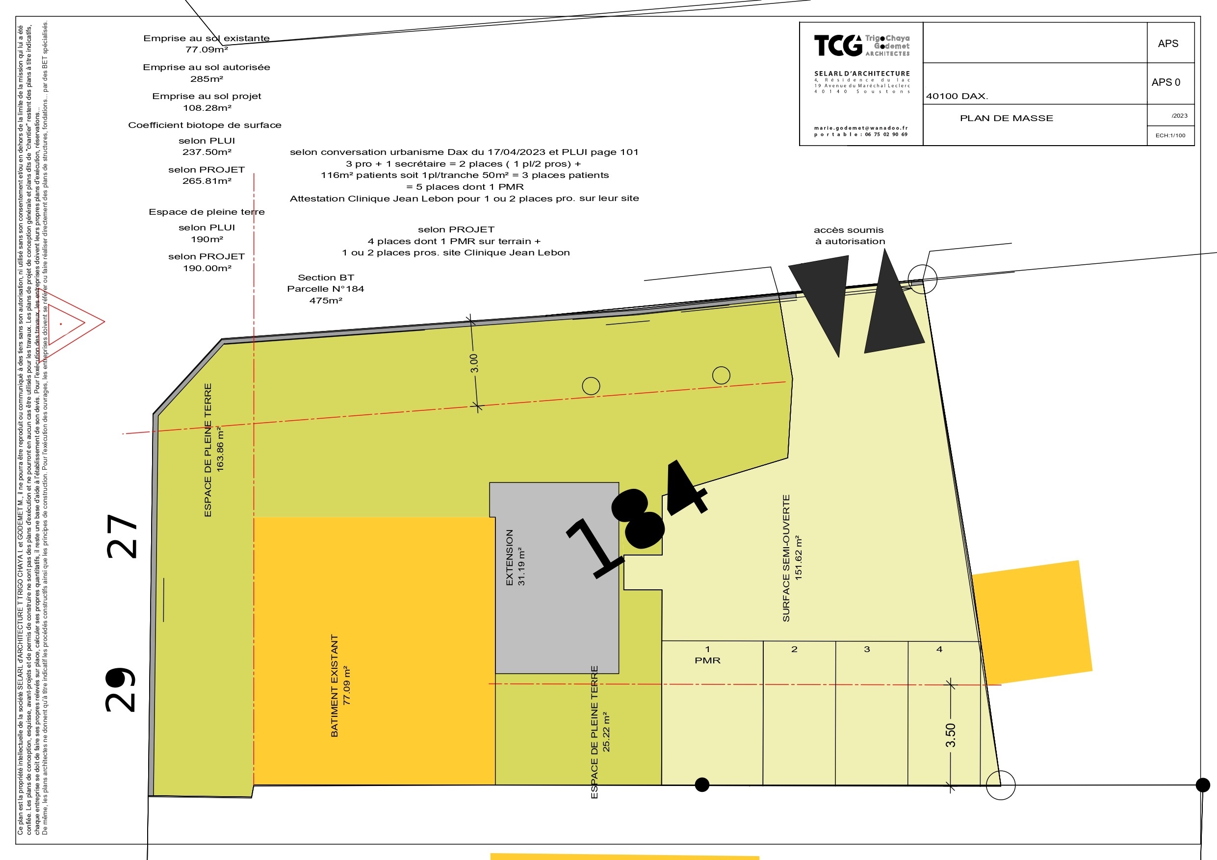 Le concept général est validé mais quelques ajustements sont nécessaires notamment en terme d’espace d’acceuil/secrétariat et d’attente. La surface du projet est limitée car les règles d’urbanisme nous interdisent d’augmenter les proportions de l’extension. Il faut chercher, dessiner différentes versions pour trouver la meilleure version de fonctionnement intérieur et donc de gain de place et cela demande du temps, de la cogitation et de la créativité !