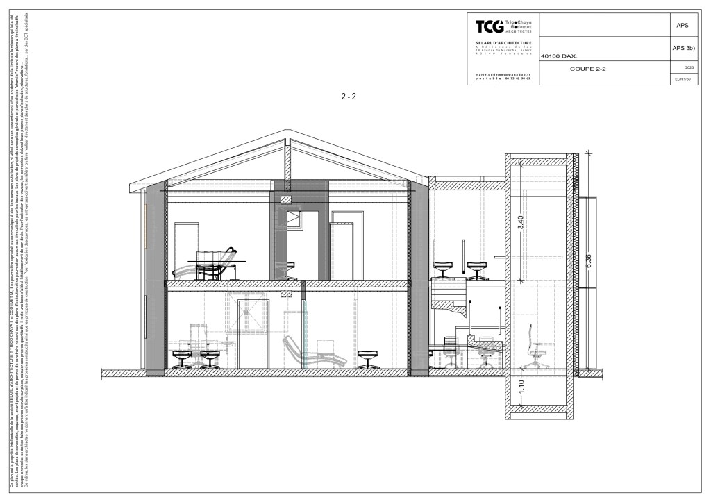Durant toute la conception, l’architecte travaille de concert avec son équipe de maîtrise d’oeuvre composée d’un économiste de la construction BETEL, d’un bureau d’étude structurelle IDC et d’un bureau d’étude fluides BETEL mais également en étroite collaboration avec le Bureau de Contrôle et le Coordinateur Sécurité et Protection de la Santé.