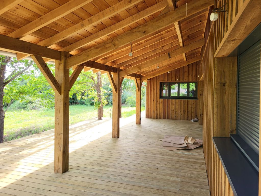 Pour que la boucle soit bouclée sur ce joli projet, il est intéressant de se souvenir de l’unique référence fournie par les clients au commencement du dossier à savoir une terrasse couverte tirée d’un projet des “cabanes Bartherotte” et de vérifier que cette terrasse bois couverte tient une place centrale dans la vie de ses occupants.